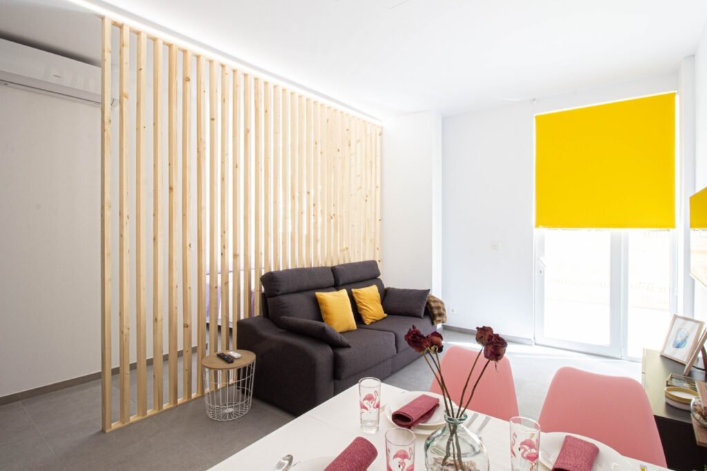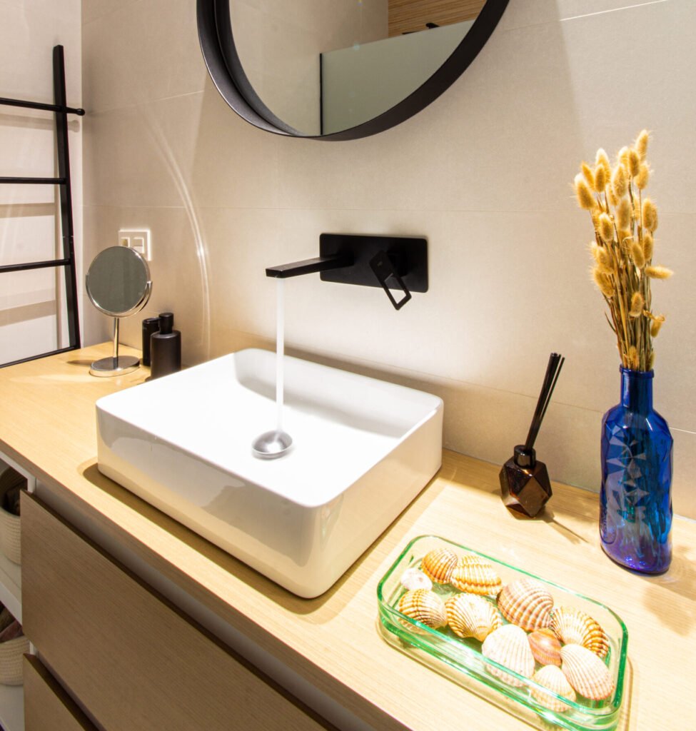 Te ofrecemos un espacio amplio, fresquito en verano, que es muy importante, y calentito en invierno, pero claro si no te gusta la temperatura puedes modificarla a tu gusto mediante la bomba de calor. El espacio se compone de una estancia principal con salón comedor y cocina y, separado por unas lamas de madera, el dormitorio, al fondo, encontrarás un magnífico vestidor y un baño espectacular, donde hemos separado la ducha (de casi dos metros de larga) del aseo, para poder disfrutar de un momento relajante sin molestias.